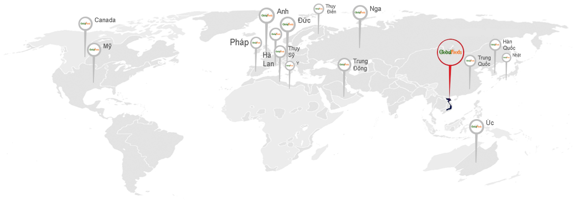 Sản phẩm của GLOBALFOODS VIỆT NAM được công nhận và xuất khẩu tới nhiều nước trên thế giới